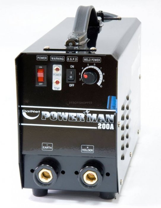 Powerman 200А - корейский инверторный профессиональный сварочный аппарат. Обладает большим запасом ПВ и прочности. Очень часто собран на IGBT модулях, в следствие этого ремонт powerman 200 выходит в копеечку.